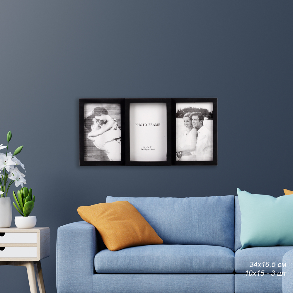Фоторамка - коллаж на три фотографии, с размерами: 3 штуки-10х15 см. Фоторамка станет удачным подарком или украшением вашего интерьера.