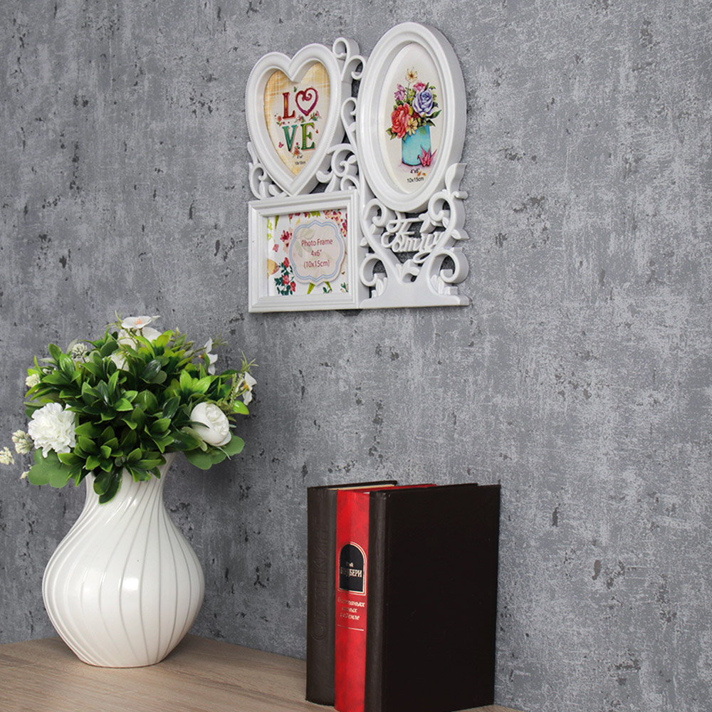 Фоторамка - коллаж на три фотографии, с размерами: 1 штука-10х10 см, 2 штуки-10х15 см. Фоторамка станет удачным подарком или украшением вашего интерьера.