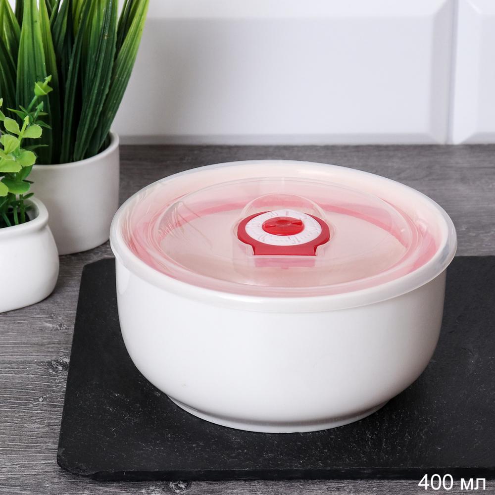 Контейнер-салатник из фарфора с пластиковой крышкой.