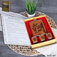 Набор подарочный Афоризмы об охоте фляжка + 3 стопки, в подарочной коробке.