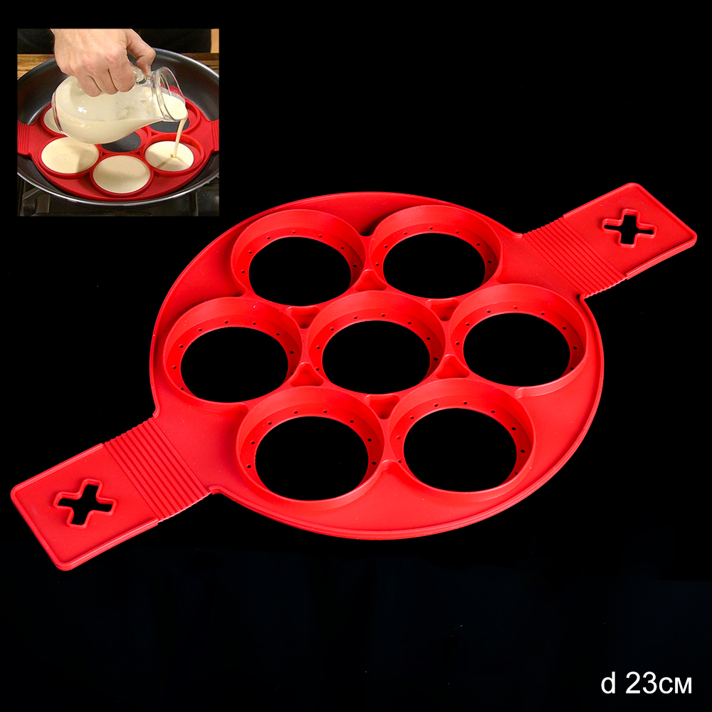 Форма силиконовая предназначена для выпечки оладий. Форма для запекания отлично подойдет для приготовления яичниц , запеканок , панкейков и сырников. Форма выполнена из силикона - современного и комфортного материала, который выдерживает высокие температуры (до 230 ). Силиконовые формы хорошо моются и не царапают антипригарное, тефлоновое, керамическое покрытие посуды. В форме 7 ячеек.