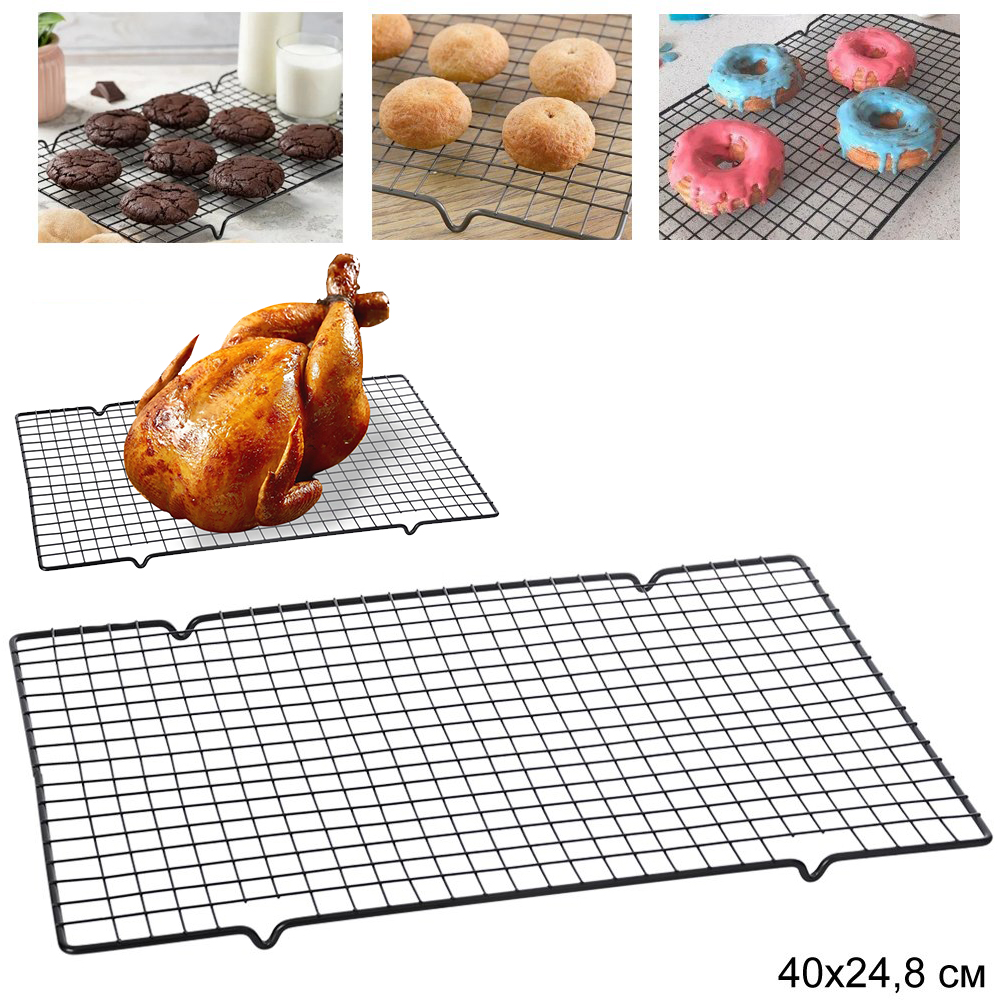Решетка кондитерская под горячее. Решетка применяется для глазирования и охлаждения кондитерских изделий, хлеба и любой выпечки. Подставка изготовлена из высококачественной стали с антипригарным покрытием. Можно использовать как подставку для кастрюль, противней и как подставку под противни в духовке.