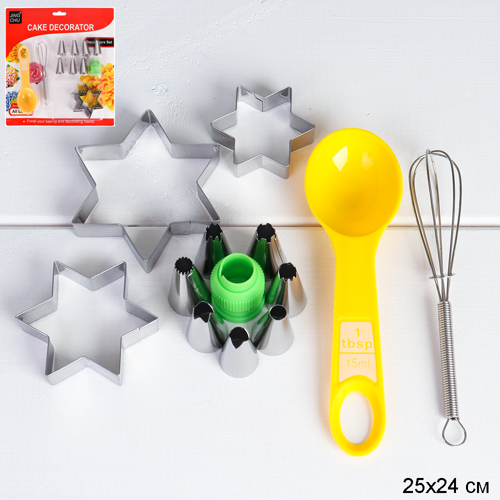 Набор кондитерских насадок для крема позволит украсить ваши кулинарные изделия красиво, легко и быстро. С помощью насадок вы можете украсить кремом или шоколадом торты и пирожные, наполнить начинкой пончики и эклеры. Изготовлены они из пищевой нержавеющей стали, что обеспечивает безопасное и долговечное использование насадок. Кондитерские насадки,переходник (адаптер), венчик, ложка мерная. форма 3 штуки Звезда / PF-726 /уп 144/