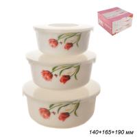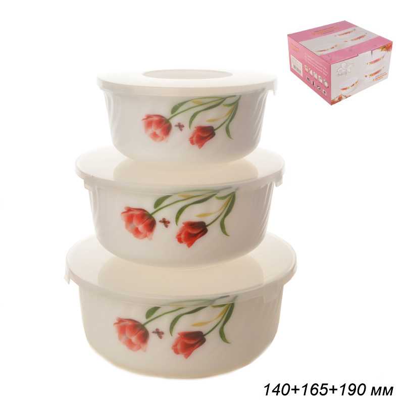 Салатники выполнены из высокопрочного материала- стеклокерамики. Стеклокерамика по своему составу и технологии производства гораздо ближе к стеклу, чем к керамике (это стекло с добавками, которые делают её непрозрачной). Посуда из стеклокерамики визуально похожа на фарфор. Обладает хорошей устойчивостью к механическим повреждениям. Подходит для использования в СВЧ печи, в посудомоечной машине.