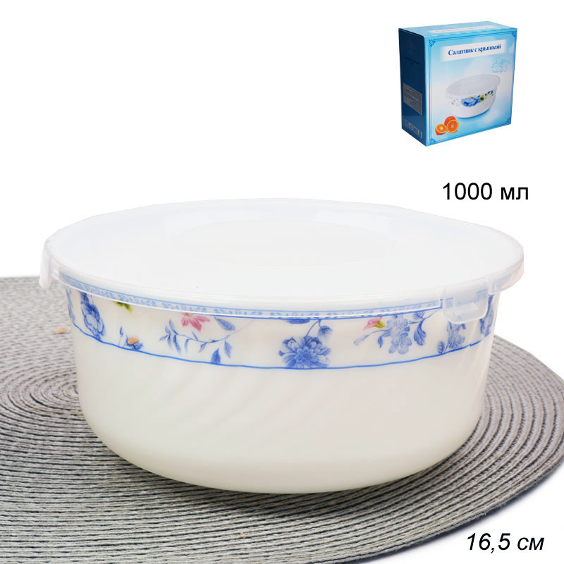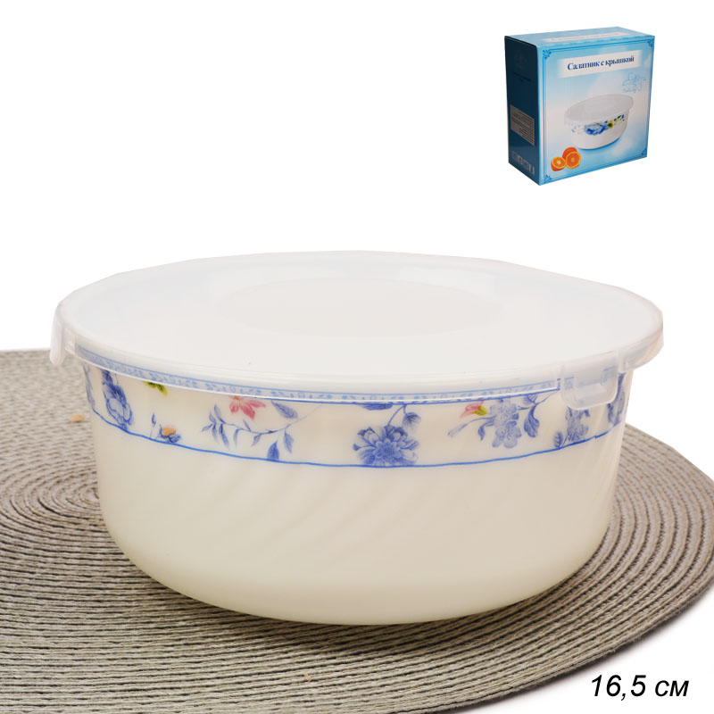 Салатник выполнен из высокопрочного материала- стеклокерамики. Стеклокерамика по своему составу и технологии производства гораздо ближе к стеклу, чем к керамике (это стекло с добавками, которые делают её непрозрачной). Посуда из стеклокерамики визуально похожа на фарфор. Обладает хорошей устойчивостью к механическим повреждениям. Подходит для использования в СВЧ печи, в посудомоечной машине.