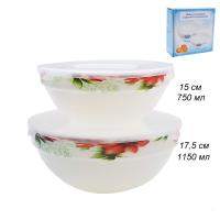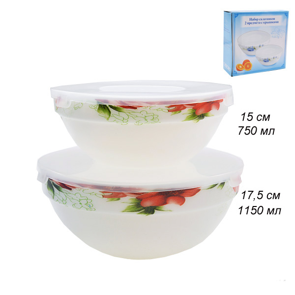 Салатники выполнены из высокопрочного материала- стеклокерамики. Стеклокерамика по своему составу и технологии производства гораздо ближе к стеклу, чем к керамике (это стекло с добавками, которые делают её непрозрачной). Посуда из стеклокерамики визуально похожа на фарфор. Обладает хорошей устойчивостью к механическим повреждениям. Подходит для использования в СВЧ печи, в посудомоечной машине.