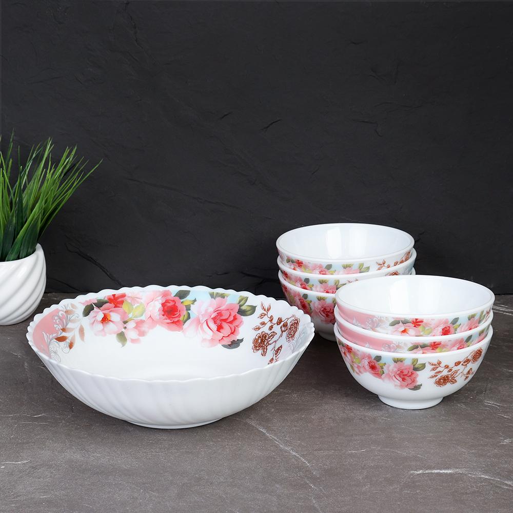 Салатник 7 предметов, стеклокерамика.Посуда отлично выглядит при сервировки любого стола и отзывы от покупателей на такие блюда только положительные. Узнать цену и купить блюдо Посуду оптом и в розницу Вы можете в нашем интернет магазине в Челябинске. А также в другиих городах, таких как Оренбург Уфа Курган Омск Тюмень Екатеринбург Самара Пенза Никольск Гусь Хрустальный и других. Доставка во многие города России бесплатная