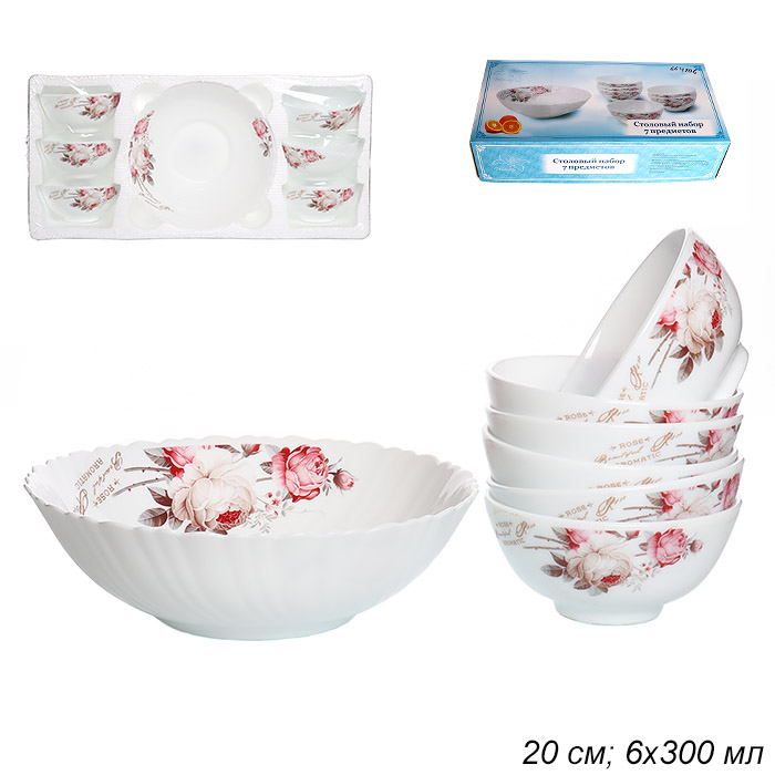 Салатник 7 предметов, стеклокерамика.Посуда отлично выглядит при сервировки любого стола и отзывы от покупателей на такие блюда только положительные. Узнать цену и купить блюдо Посуду оптом и в розницу Вы можете в нашем интернет магазине в Челябинске. А также в другиих городах, таких как Оренбург Уфа Курган Омск Тюмень Екатеринбург Самара Пенза Никольск Гусь Хрустальный и других. Доставка во многие города России бесплатная