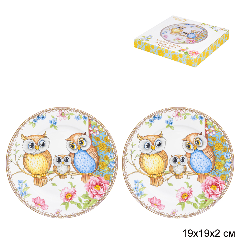 Набор десертных тарелок диаметром 19 см из серии Совушки, фарфор.