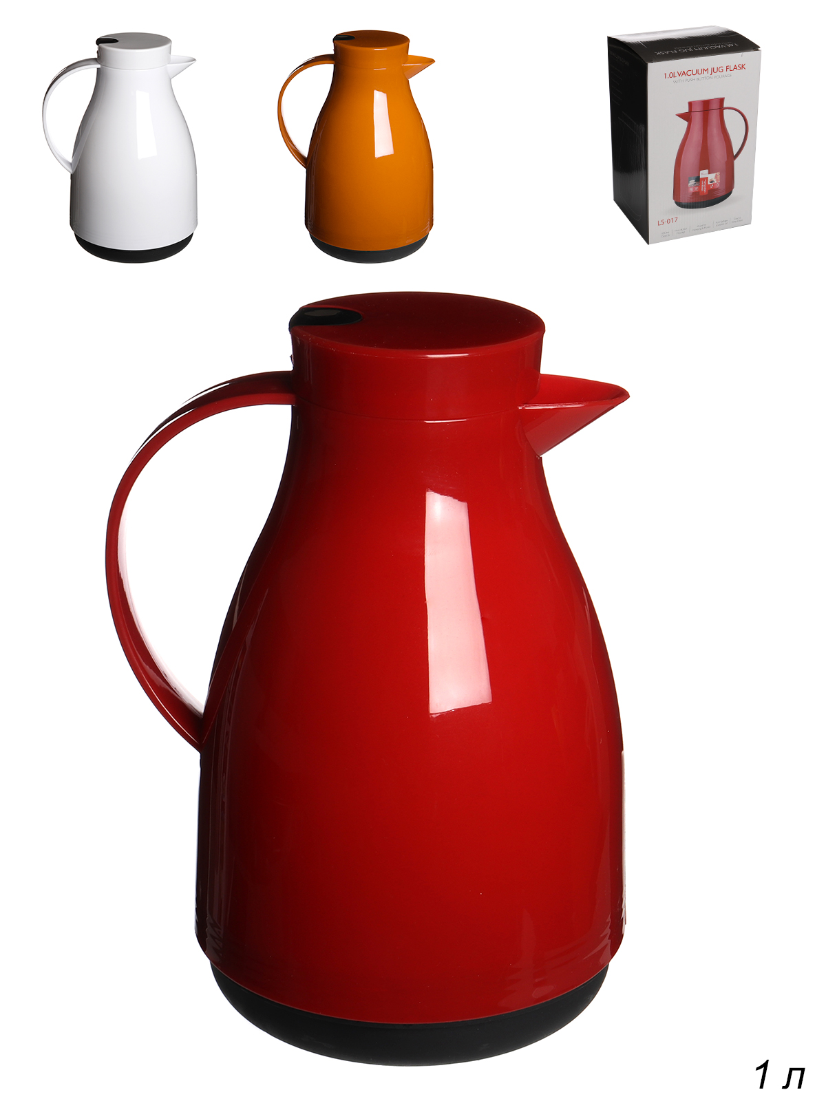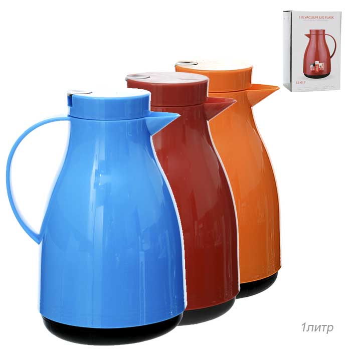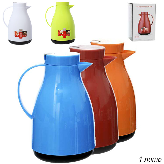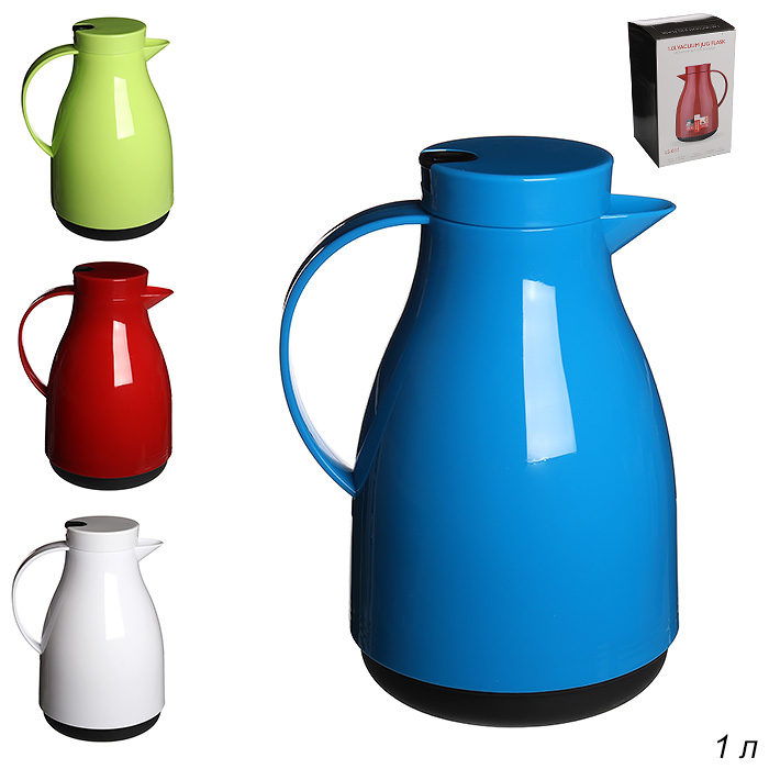 Термос кувшин 1 л, корпус пластиковый, стеклянная колба.