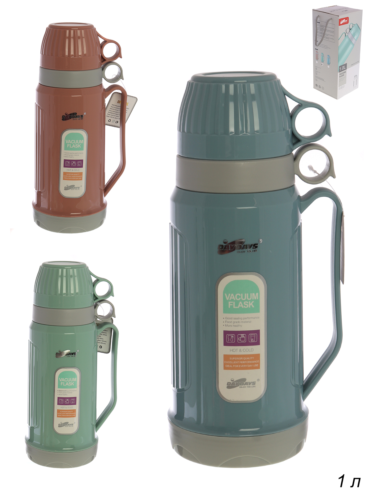 Термос 1 л, пластиковый корпус, колба стеклянная.