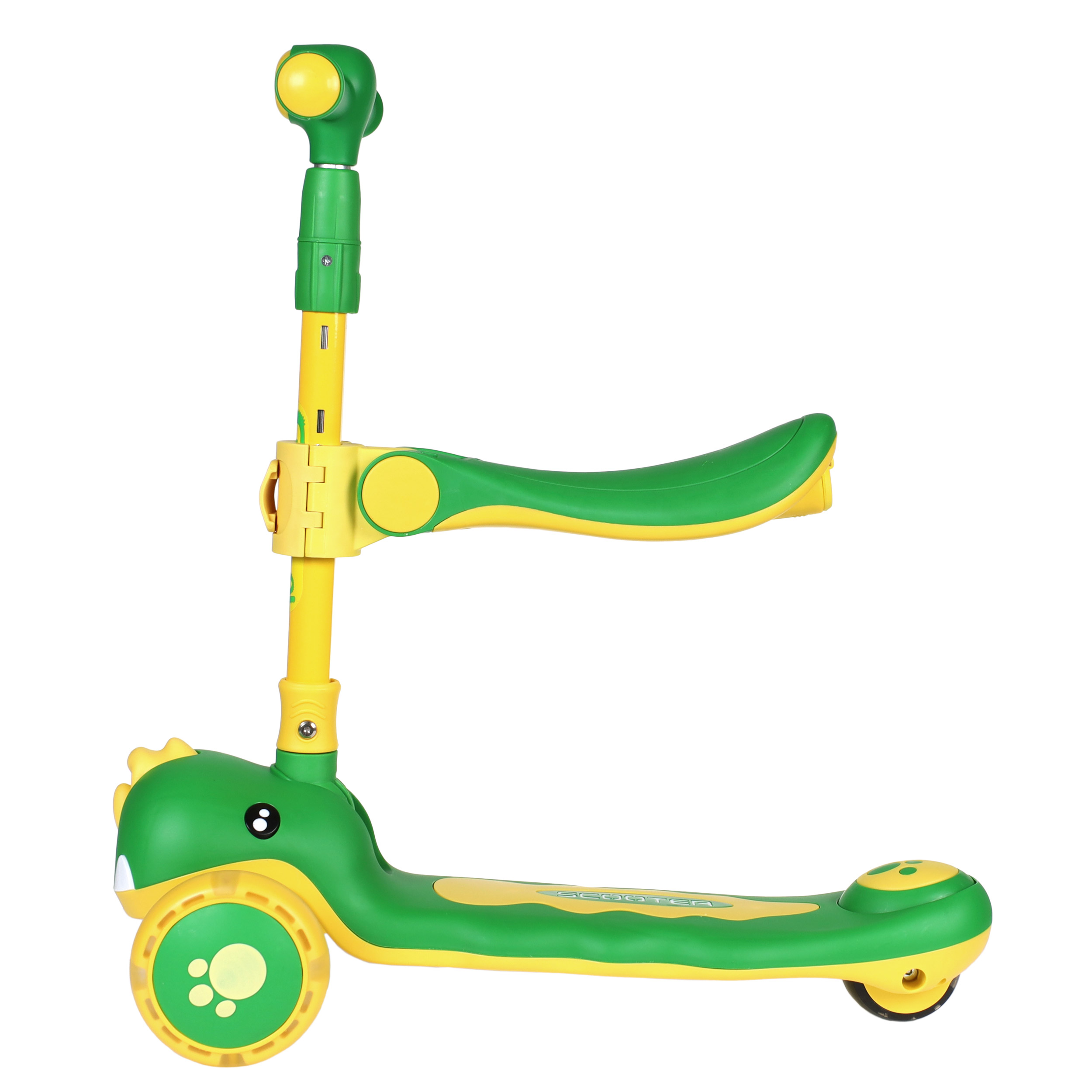 - Трансформация в беговел: Съемное сиденье позволяет превратить самокат в балансбайк, что особенно полезно для первых шагов в освоении транспортного средства.