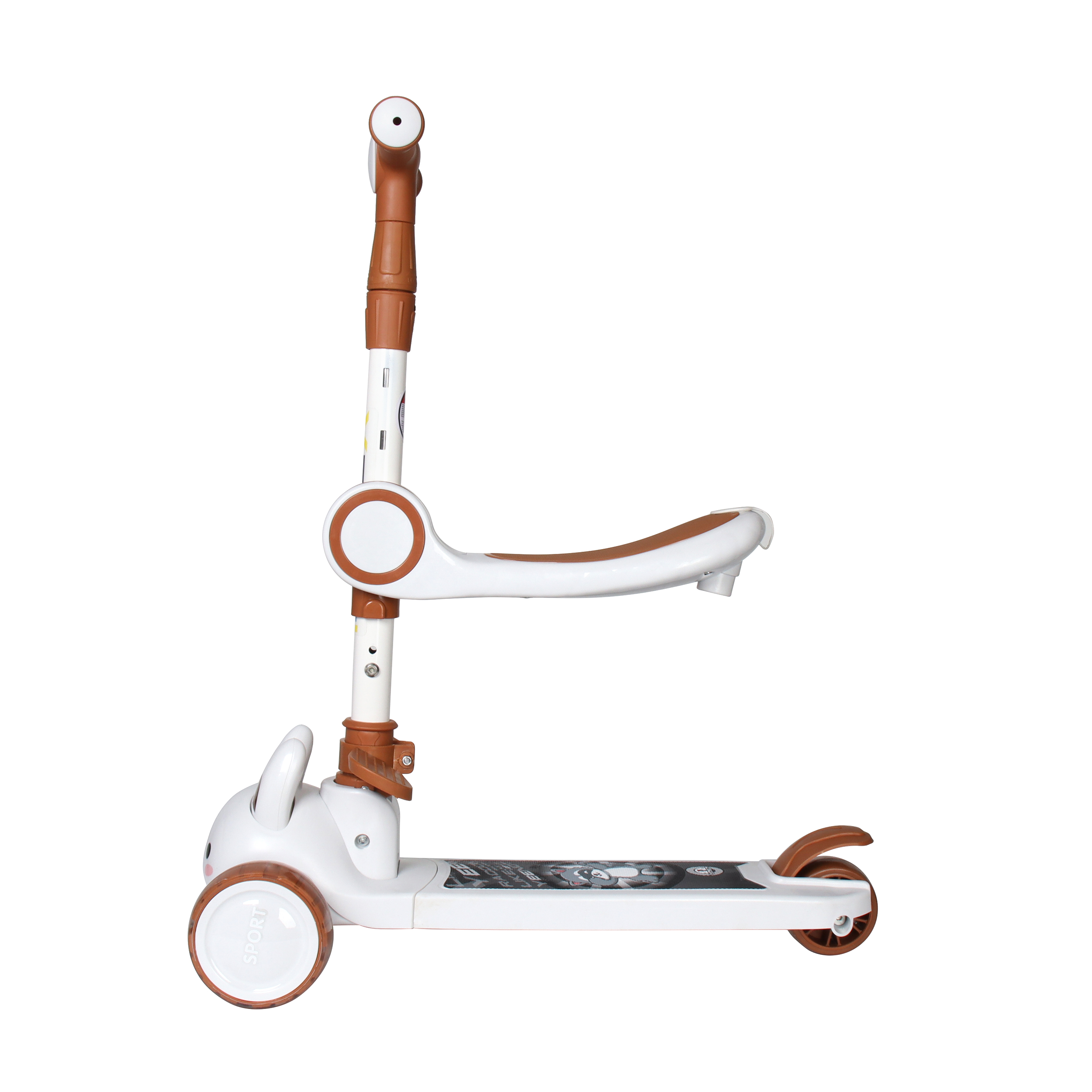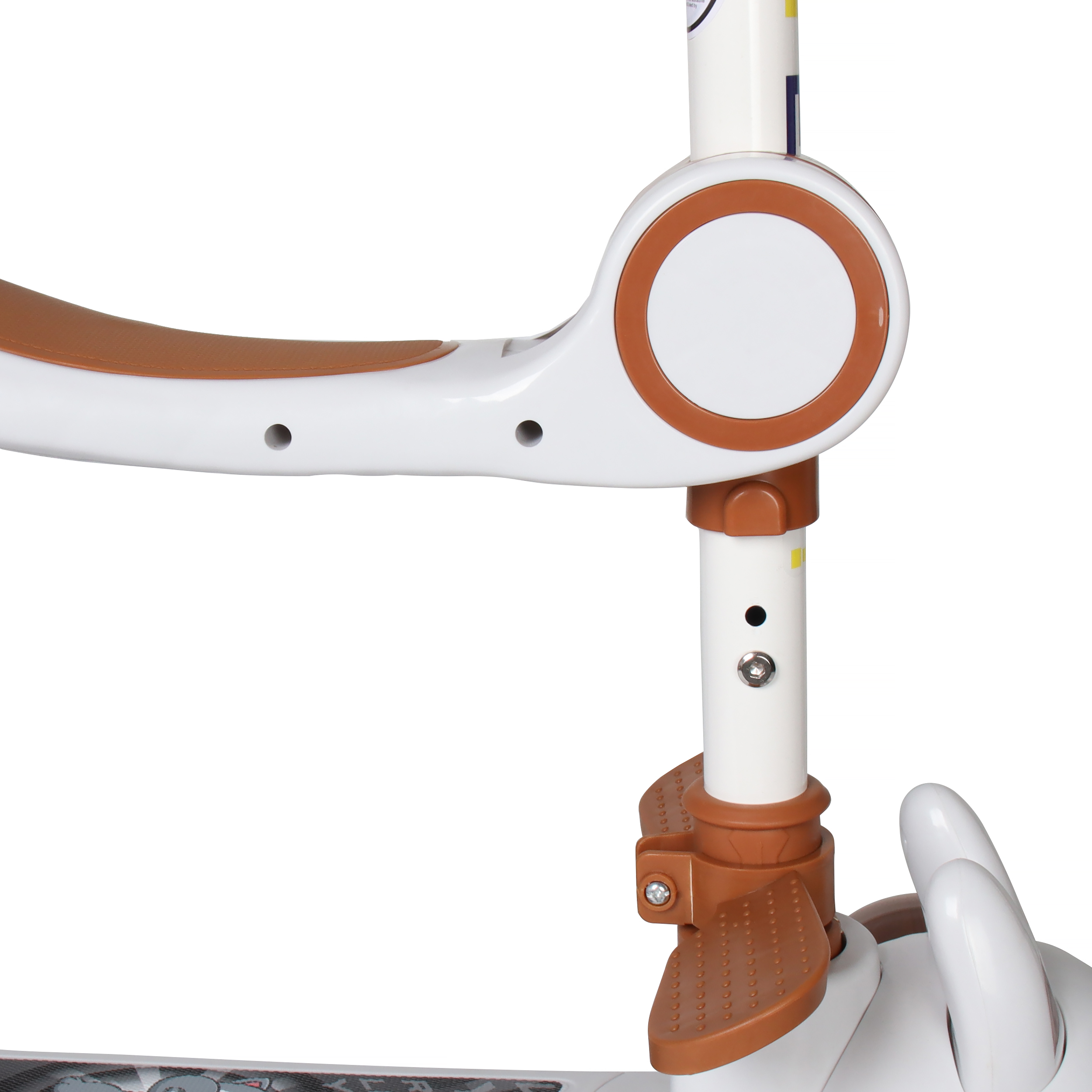 - Съёмное сиденье: Самокат легко трансформируется в беговел, что поможет ребёнку освоить навыки удержания равновесия и координации.