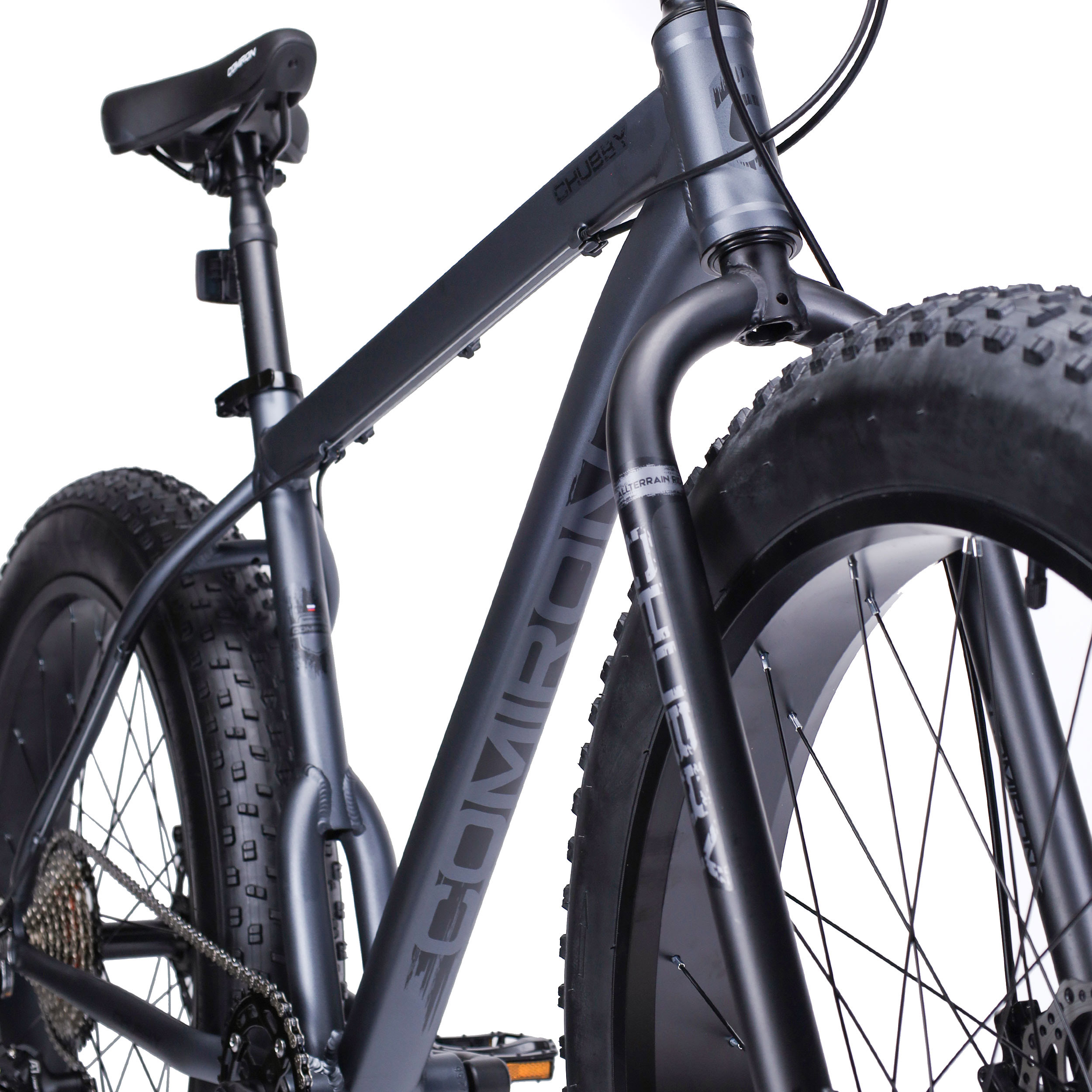 COMIRON CHUBBY - это фэтбайк на алюминиевой раме и с обвеской от нового мирового производителя L-TWOO, достаточной, чтобы уверенно кататься по пересеченной местности, невзирая на рельеф и неровности дороги.