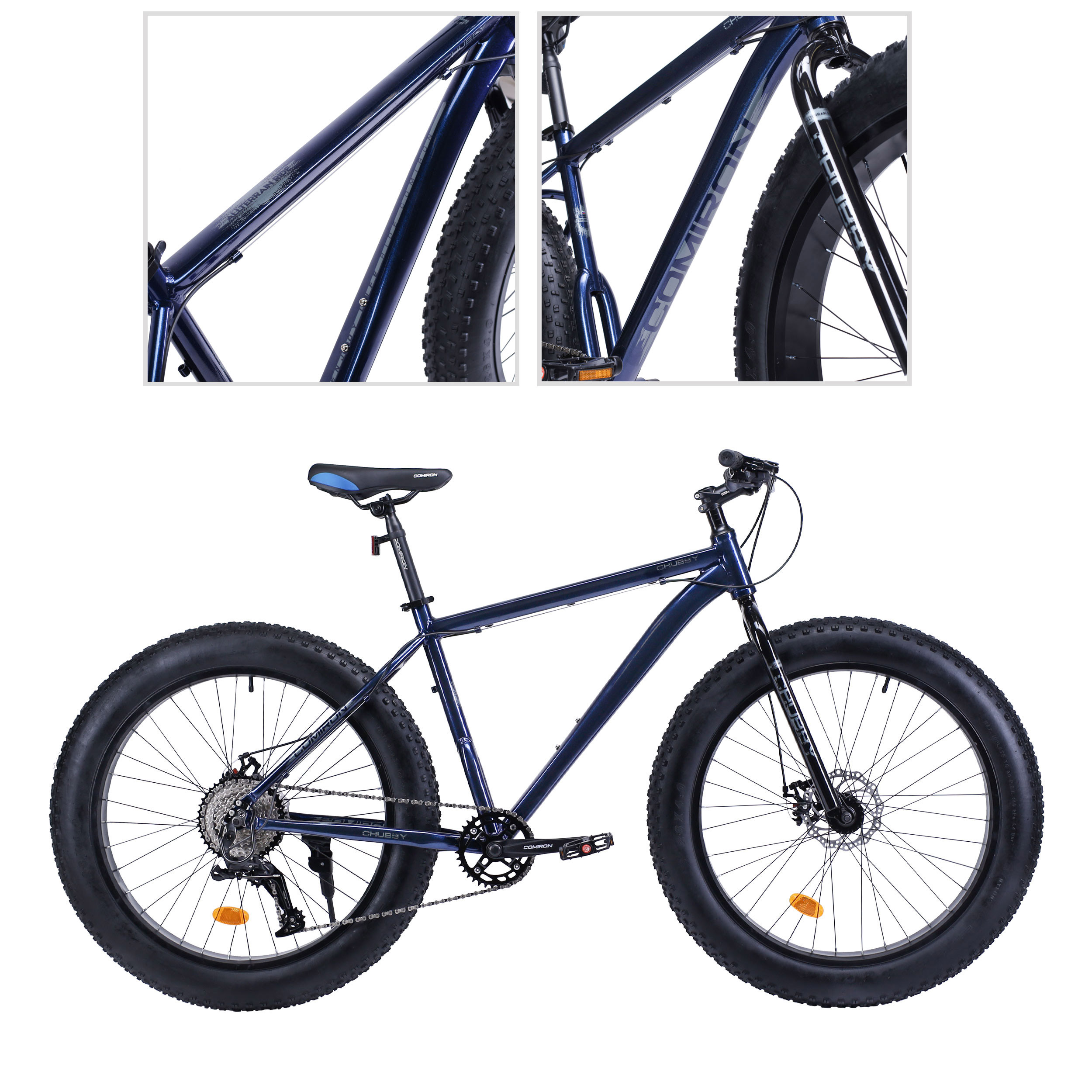 COMIRON CHUBBY - это фэтбайк на алюминиевой раме и с обвеской от нового мирового производителя L-TWOO, достаточной, чтобы уверенно кататься по пересеченной местности, невзирая на рельеф и неровности дороги.