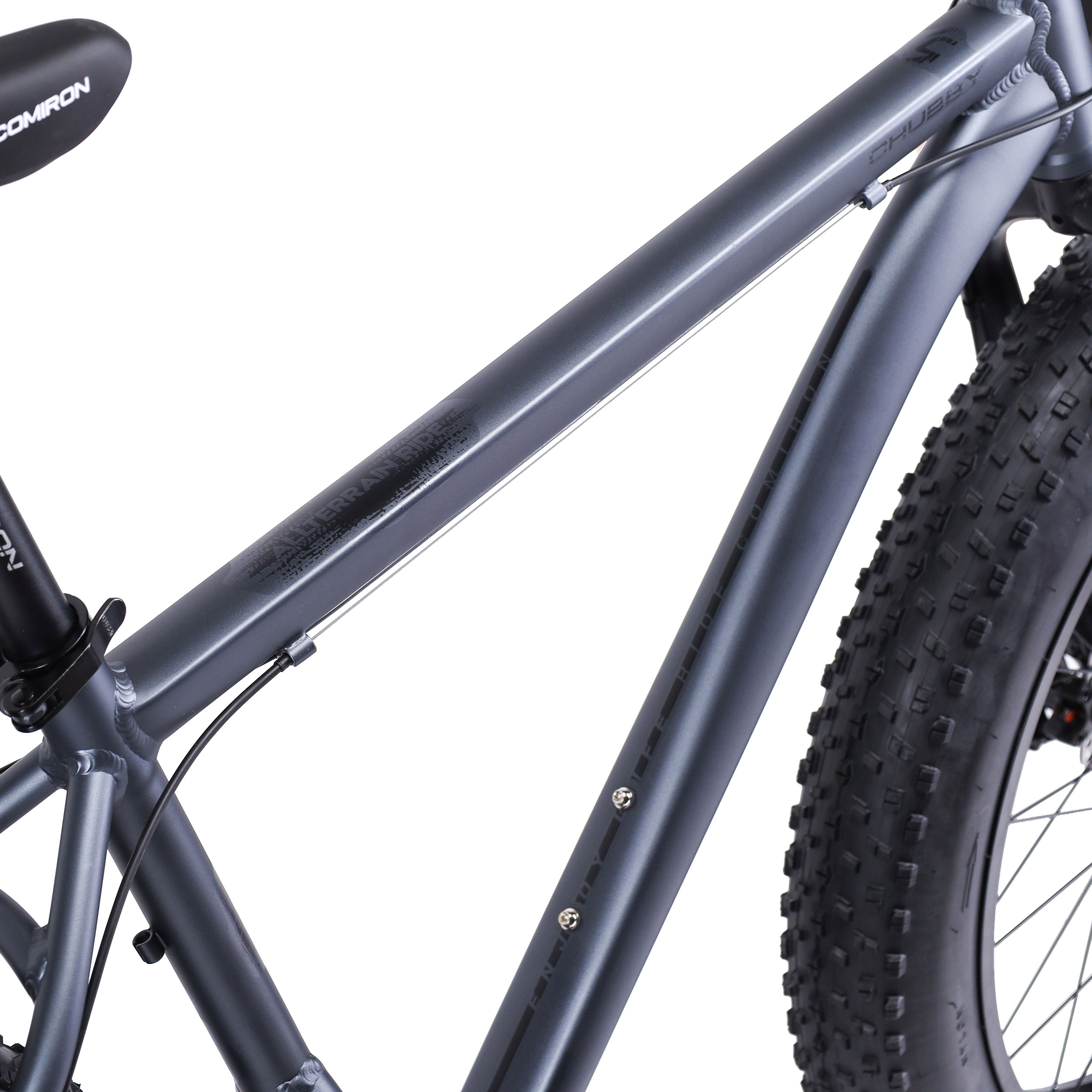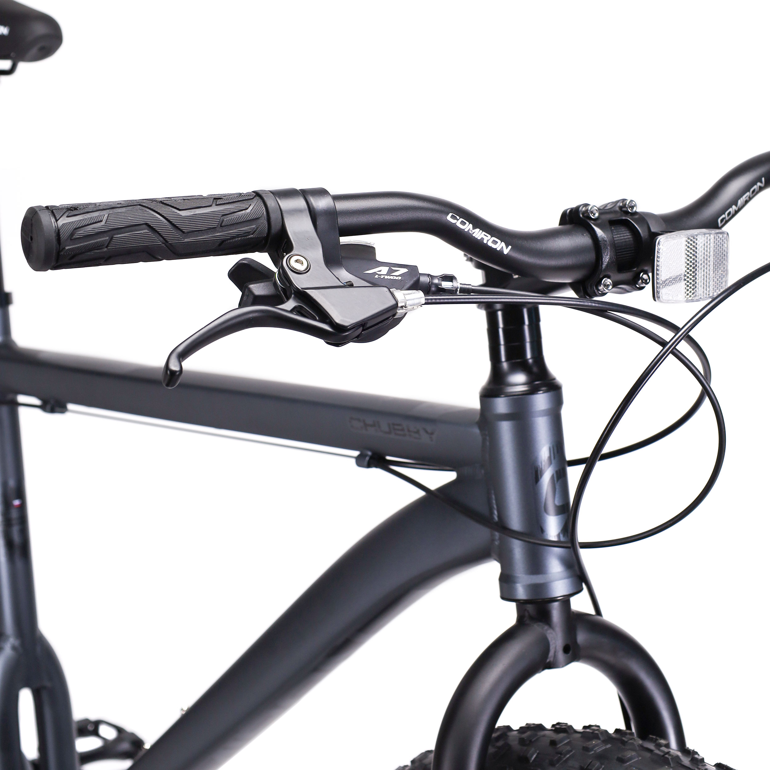 COMIRON CHUBBY - это фэтбайк на алюминиевой раме и с обвеской от нового мирового производителя L-TWOO, достаточной, чтобы уверенно кататься по пересеченной местности, невзирая на рельеф и неровности дороги.