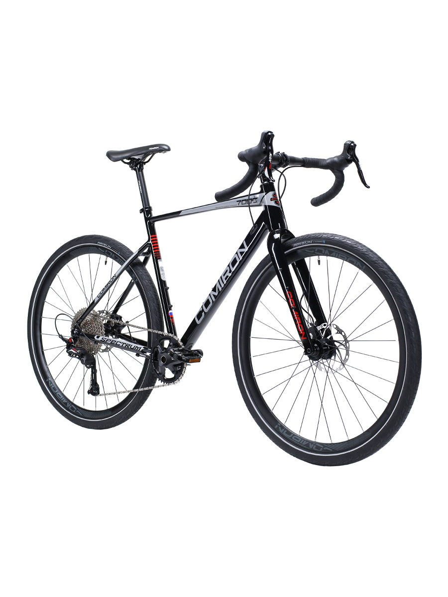 GRAVEL-байк COMIRON SPECTRUM – технологичная «ракета» для велопутешествий и уверенного катания по грунтам. Собран на продуманной алюминиевой раме с полированными швами и выгодно отличающимся лакокрасочным покрытием. Оборудован надёжными, надёжными компонентами, карбоновой вилкой, внутренней проводкой тросов, проверенной гонками трансмиссией SENSAH 1х11, дисковыми тормозами, бонками на вилке и раме под багажники для велотуризма.