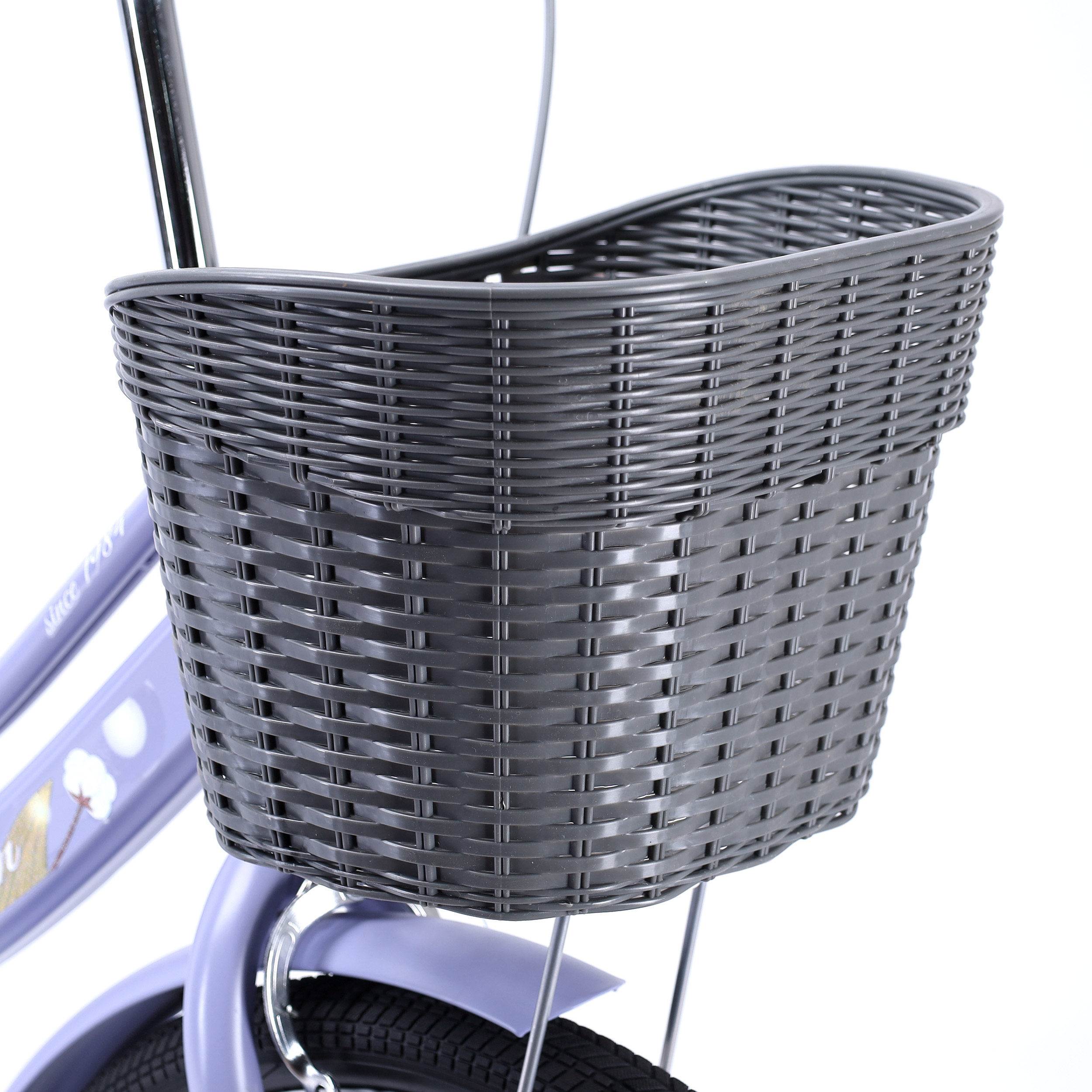- Корзина: Вместительная пластиковая корзина, стилизованная под плетеную, установлена на опоры для увеличения грузоподъемности.